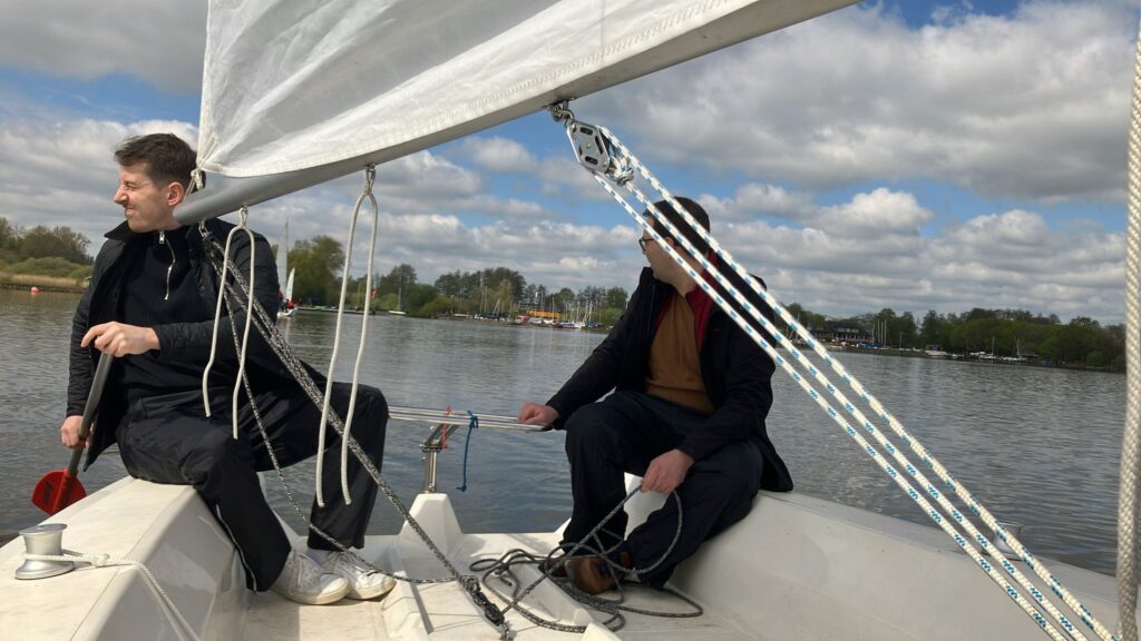 Doch das Schicksal war uns hold: Nach einer weiteren Pause an Land, in der wir unsere Motivation in der Aalräucherei Hoffmann wieder aufpäppelten, wagten wir den zweiten Anlauf. Diesmal war der Wind uns hold – wenn auch nur ein bisschen. Mit einer cleveren Taktik, den Segelschülern der Segelschule Godewind nachzueifern, konnten wir doch noch die ein oder andere Seemeile zurücklegen. Und siehe da – aus dem Ruderabenteuer wurde doch noch ein ordentliches Segelabenteuer!